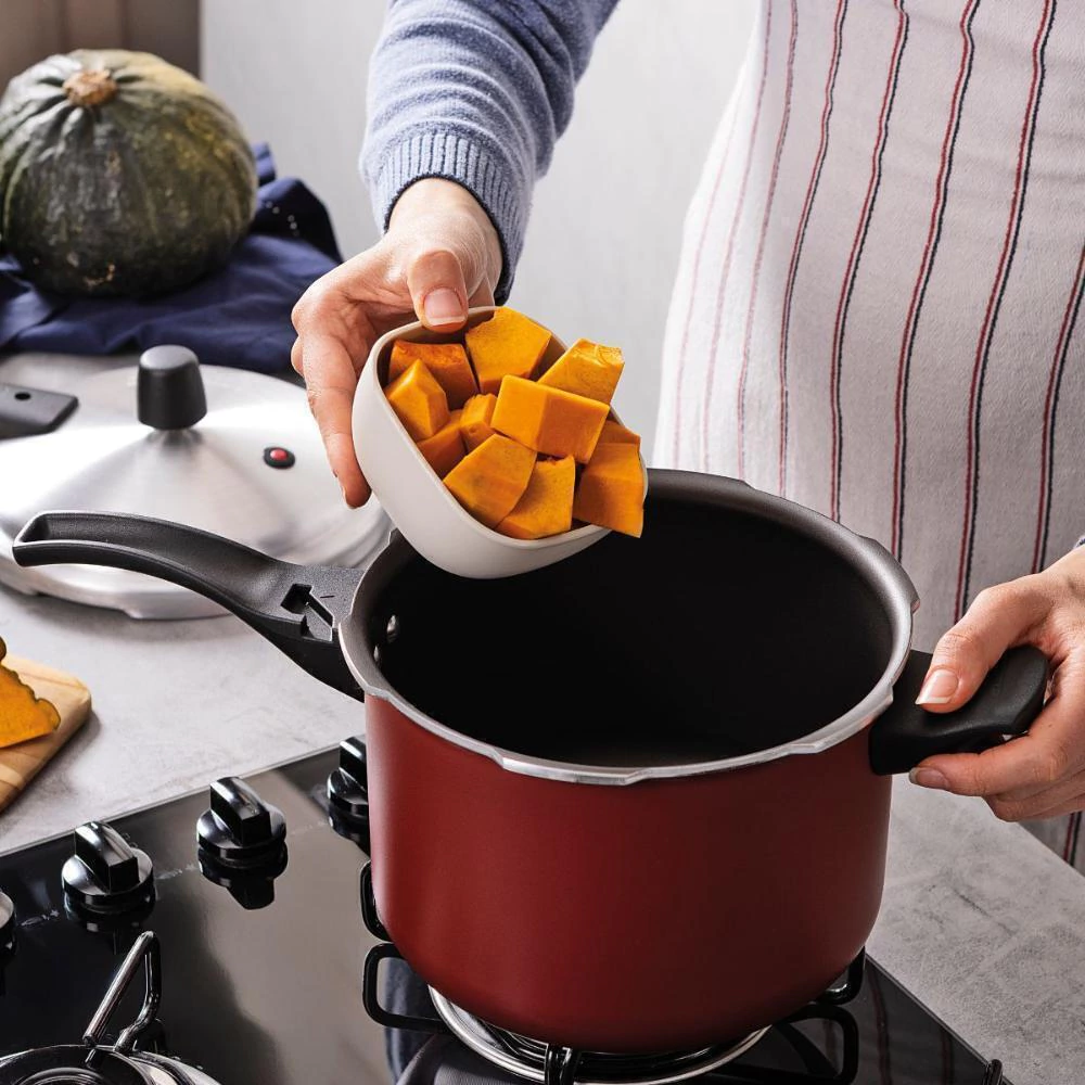 Seja qual for a receita que você vai preparar, é essencial contar com itens de qualidade, como o jogo de panelas Tramontina Turim e a Panela de Pressão Vancouver em alumínio com revestimento interno e externo em antiaderente Starflon Max. Aptas para uso no dia a dia, suas peças garantem maior segurança e facilidade na hora preparar suas refeições, pois contam com cabos, alças e pegadores em baquelite e nylon e vem com tampas de vidro temperado com borda de aço inox. Você ainda cozinha de maneira rápida e uniforme, sem que os alimentos grudem em sua superfície e tem facilidade na limpeza, pois o corpo das peças tem produção em alumínio com revestimento em antiaderente Starflon Max. Escolha Tramontina e deixe suas tarefas na cozinha, ainda melhores!